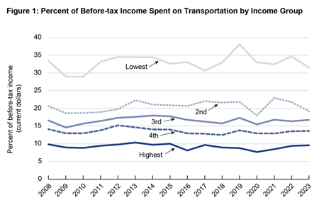 Figure 1. Calculations by U.S. Department of Transportation, Bureau of Transportation Statistics, from U.S. Department of Labor, Bureau of Labor Statistics, Consumer Expenditure Survey calendar year means, available at www.bls.gov/cex as of November 2024.